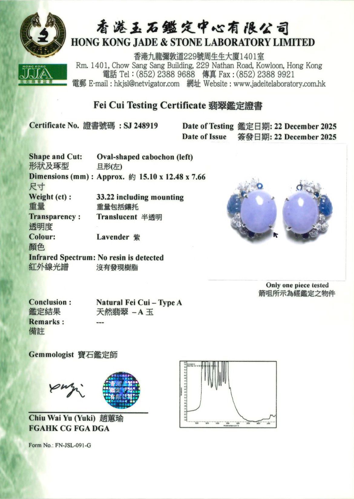Accompanied by a Hong Kong Jade & Stone Laboratory certificate stating the jadeite is natural, known in the trade as "A Jade".
