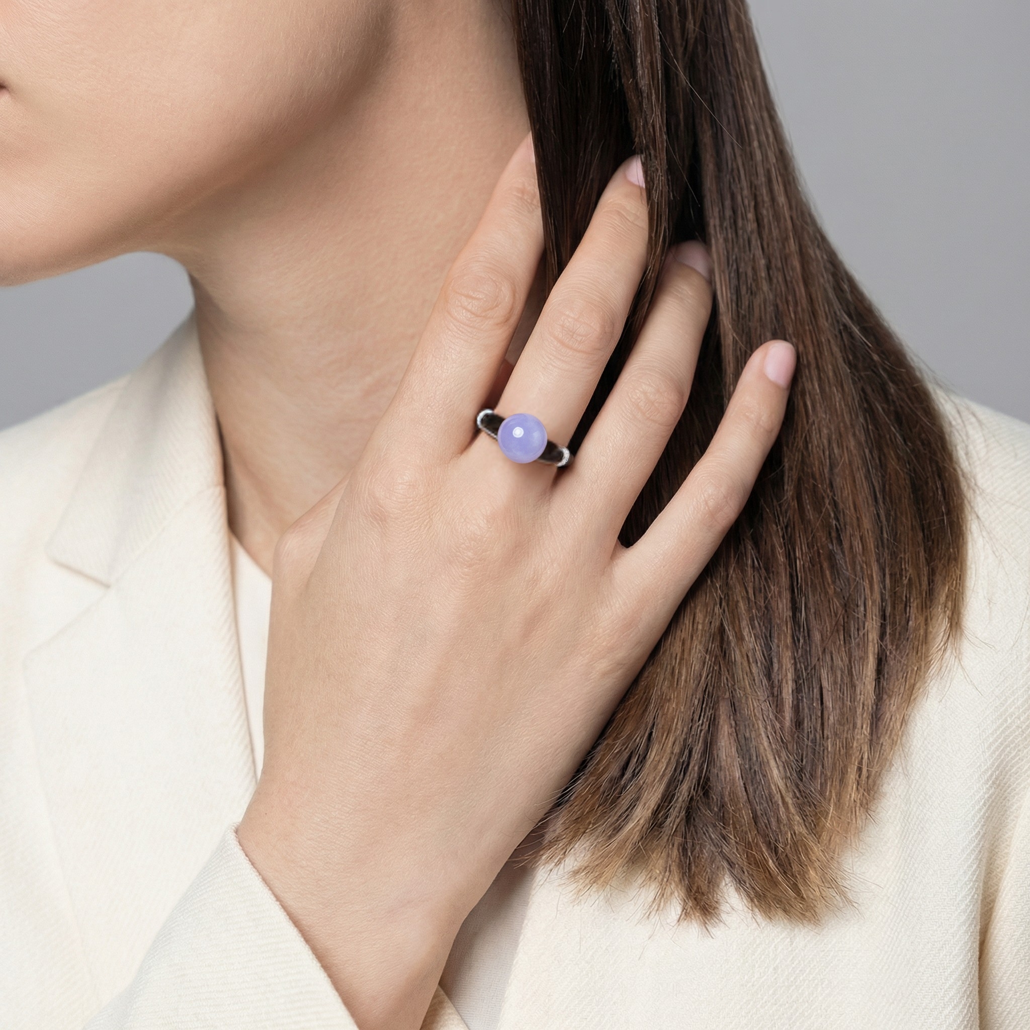 18K White Gold Lavender Jadeite Bead Onyx Diamond