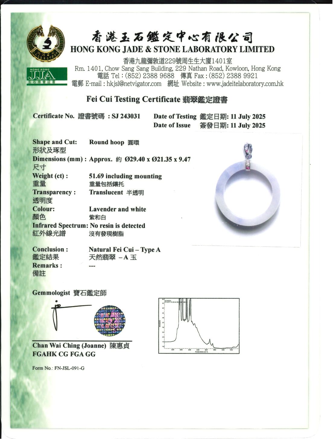Accompanied by Hong Kong Jade & Stone Laboratory Certificate, stating that the jadeite is natural, known in the trade as ‘A Jade’.