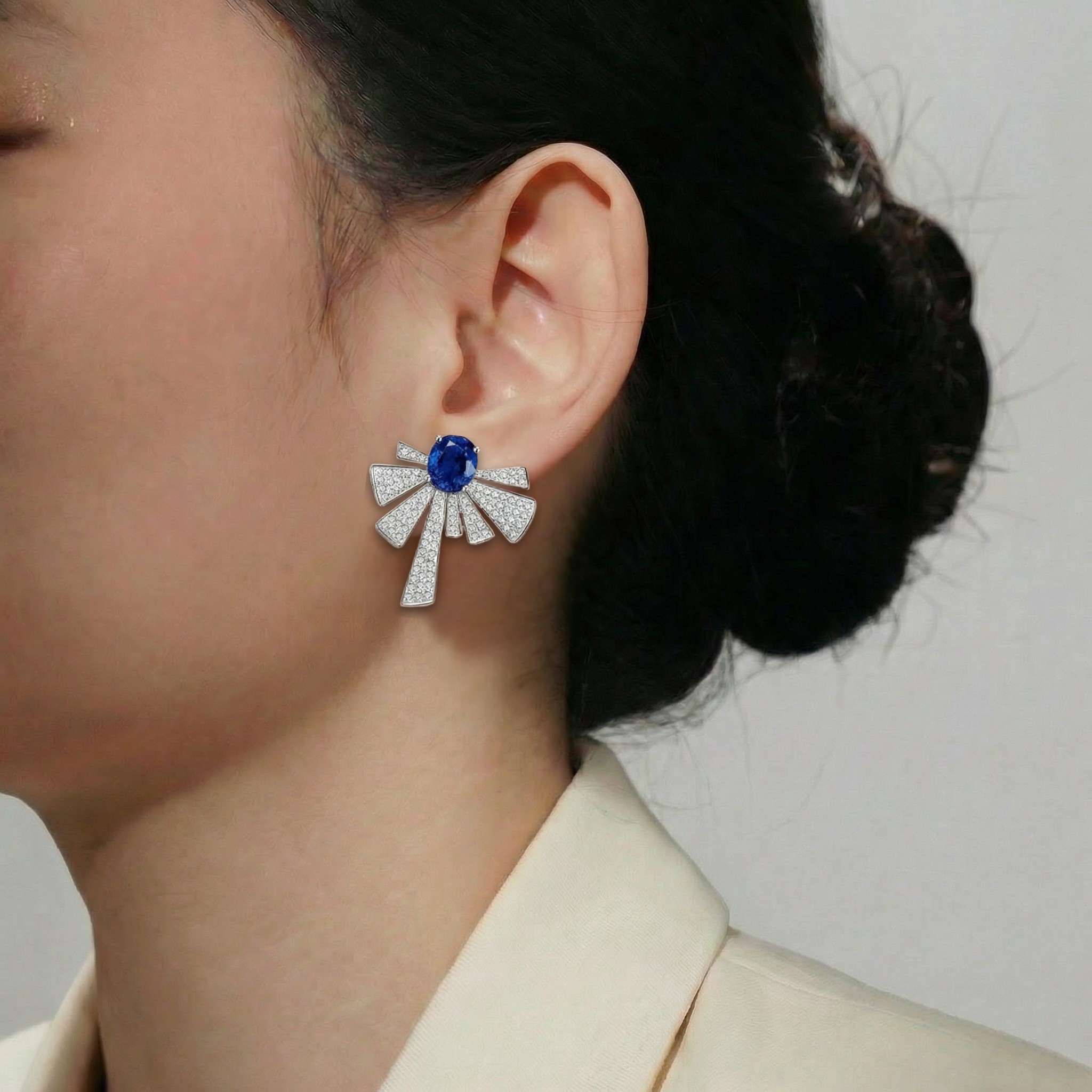 18K White Gold 2 Royal Blue Sapphires 4.27 ct Diamond Earrings measure approximately 24.00 mm x 23.00 mm