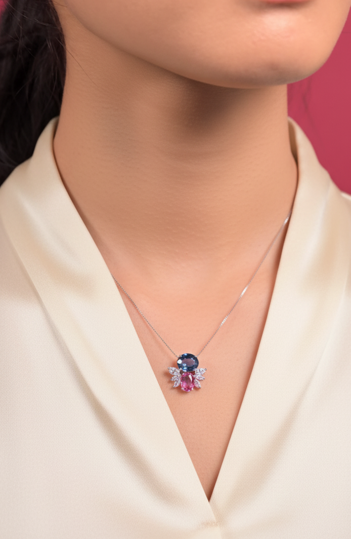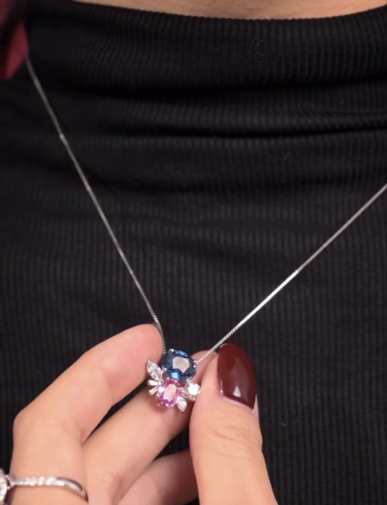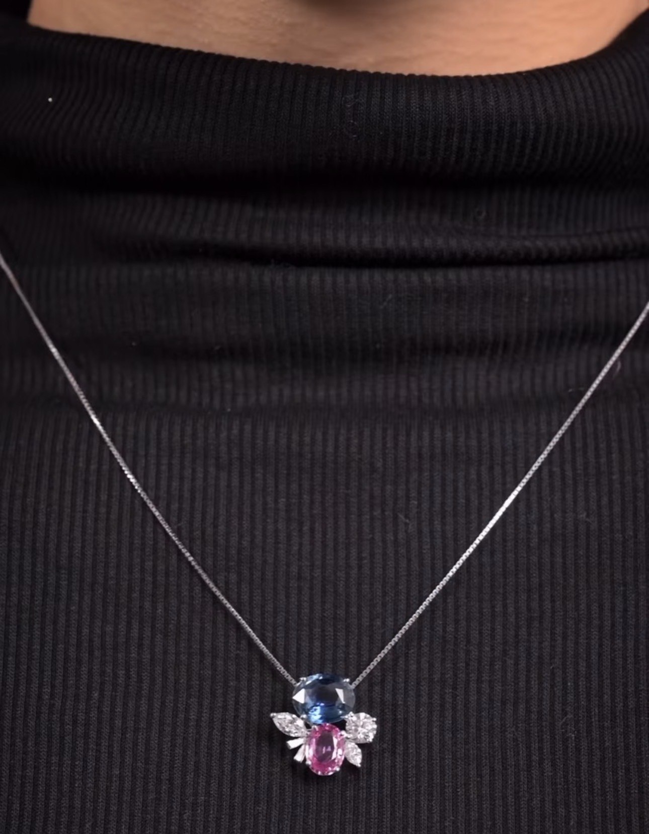 18K White Gold Unheated Blue Sapphire 3.05 ct Pink Sapphire 1.19 ct Diamond