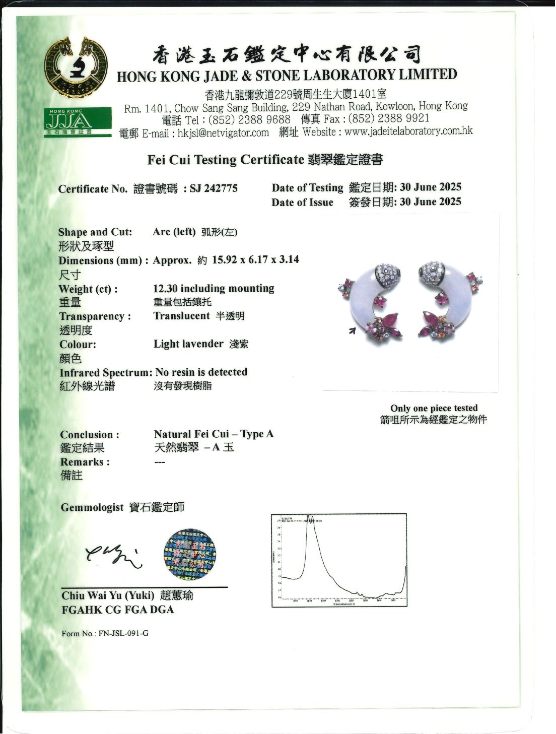 Accompanied by a Hong Kong Jade & Stone Laboratory certificate stating the jadeite is natural, known in the trade as "A Jade".