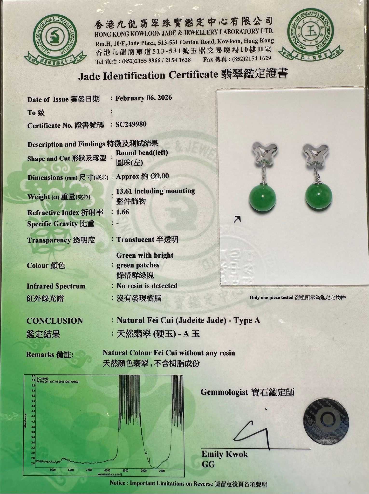 Platinum PT950 Jadeite Bead Dimension approx: 9 mm